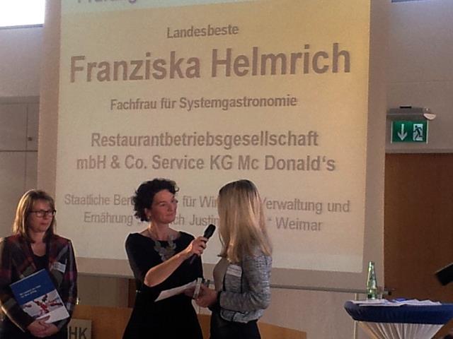 - Am 14.11.2014 wurden in der IHK Gera Azubis geehrt. Aus unserer Schule war Franziska Helmrich dabei.