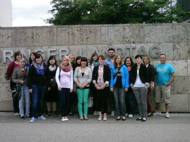 - Am 11.07.2013 waren die Fab 11 und die VfA 11 im Thüringer Landtag und haben an der letzten Plenarsitzung vor der Sommerpause als Zuschauer teilnehmen können. Zuvor haben wir eine Einführung zur Geschichte des Landes Thüringen und zum Thüringer Landtag erhalten. Im Anschluss erhielten die Azubis die Möglichkeit Fragen zu den Themen und Ablauf im Plenarsaal zu stellen. Auch für das leibliche Wohl wurde durch den Landtag gesorgt, denn die Azubis und Lehrer wurden danach zum Mittagessen eingeladen. Foto...